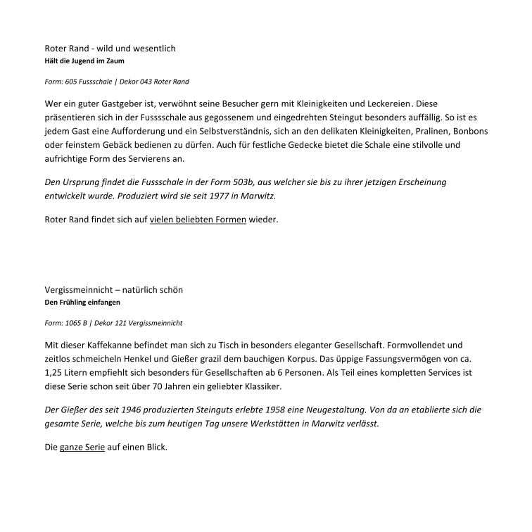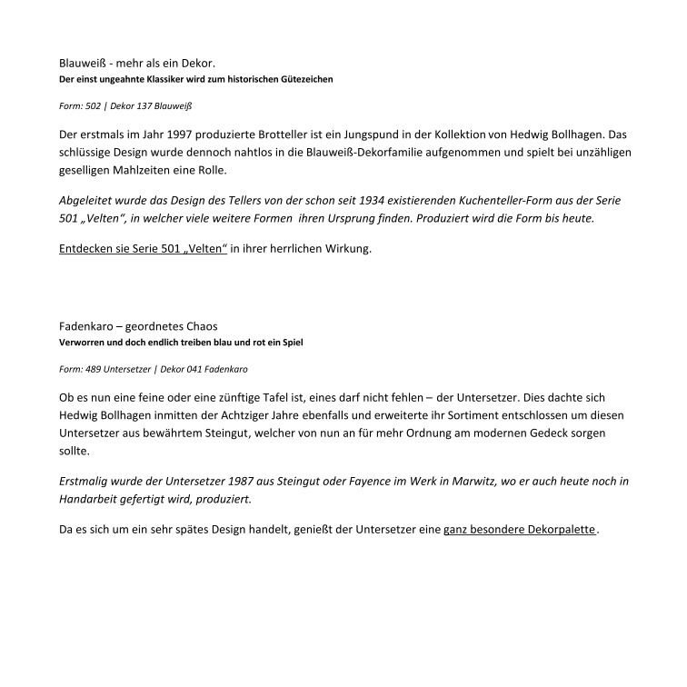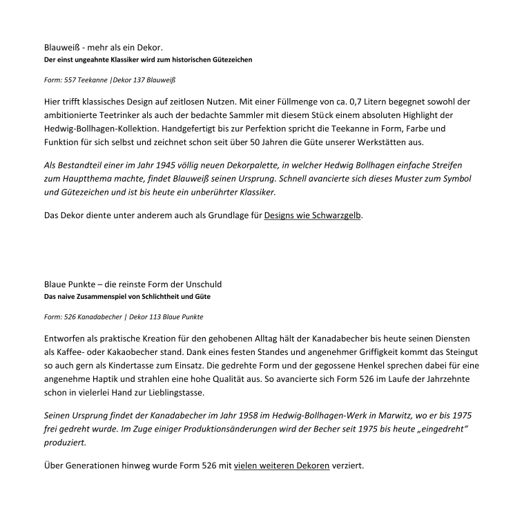 Frau Bollhagen, welche vor 81 Jahren mit ein paar Töppen und Kannen anfing, hätte warscheinlich nie gedacht, dass es mal so weit kommt. Selbst das Göthe-Institut hat die Dame zu einer der besten Designerinnen aller Zeiten gekürt. Da kann man ruhig mal stolz sein. Nun haben wir 2015 und die HB-Werkstätten in Marwitz schreien nach einem Onlinevertrieb. Das wurde aber auch Zeit.